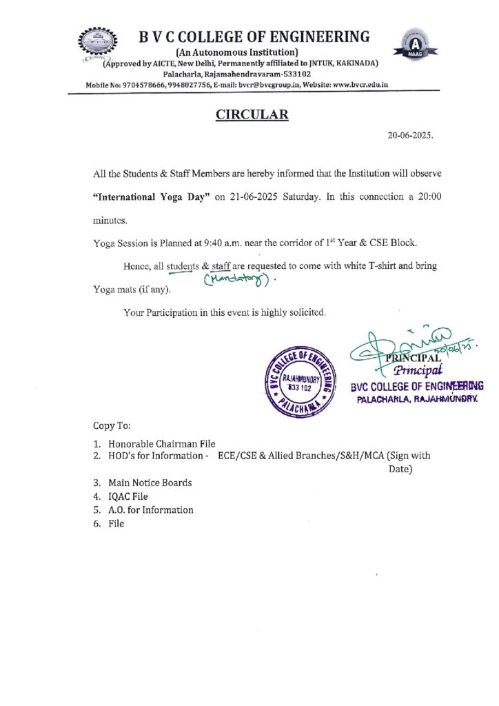 June 20, 2025 2025-06-20 5:55INTERNATIONAL YOGA DAY-2025 on 21-06-2025 in CSE block..